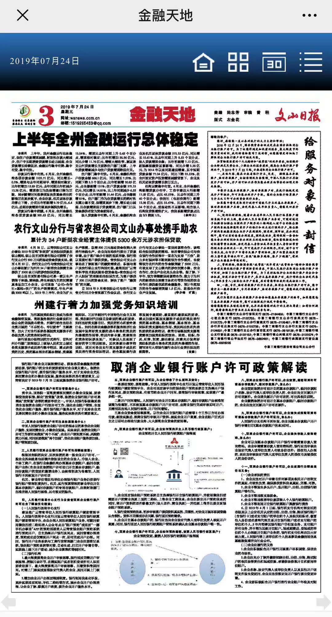 7月11日,為加強(qiáng)辦事處的宣傳工作,文山辦事處負(fù)責(zé)人李少峰與文山日?qǐng)?bào)社記者進(jìn)行了座談,詳細(xì)向記者介紹了云南農(nóng)擔(dān)的成立背景、業(yè)務(wù)準(zhǔn)入范圍及我辦事處在文山地區(qū)開(kāi)展支農(nóng)業(yè)務(wù)的具體情況。座談后,文山日?qǐng)?bào)記者對(duì)農(nóng)擔(dān)公司及辦事處助推全省及全州農(nóng)業(yè)產(chǎn)業(yè)發(fā)展的工作給予了高度贊揚(yáng)!主動(dòng)向我辦事處邀稿,借助紙媒及電子媒體的渠道為辦事處支農(nóng)工作進(jìn)行宣傳。下半年文山辦事處將加強(qiáng)宣傳工作,讓更多人認(rèn)識(shí)了解云南農(nóng)擔(dān)公司,讓農(nóng)擔(dān)好政策、好產(chǎn)品深入人心,主動(dòng)作為,為文山州提供更加優(yōu)質(zhì)的貸款擔(dān)保服務(wù),為文山州的脫貧工作貢獻(xiàn)一份力!