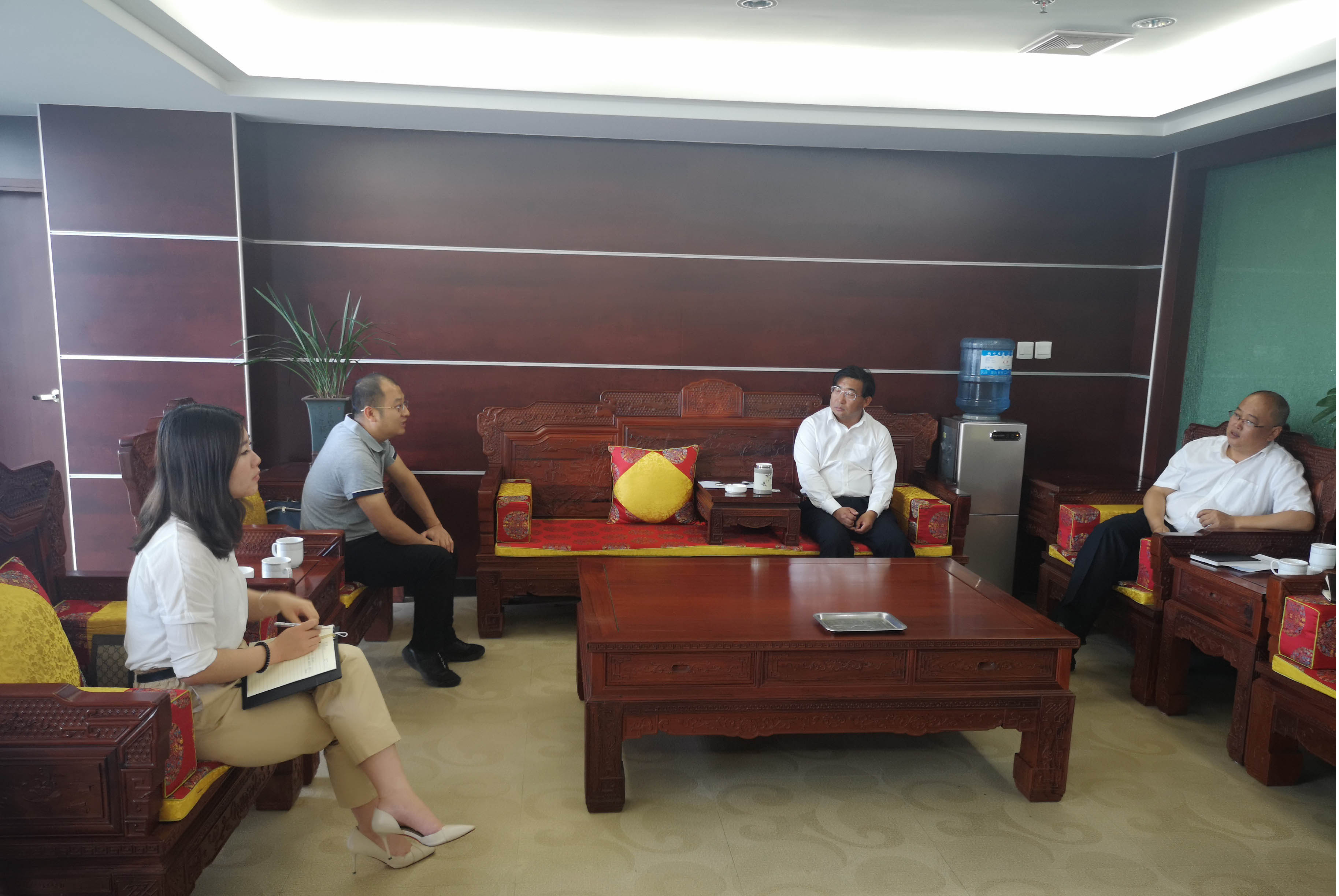 2019年5月7日,農(nóng)擔(dān)二部負(fù)責(zé)人賈萬文、保山辦事處業(yè)務(wù)主管胡幫露一行到騰沖農(nóng)村商業(yè)銀行開展座談會,與騰沖農(nóng)村商業(yè)銀行董事長文文、公司業(yè)務(wù)部總經(jīng)理趙明興進(jìn)行了交流。