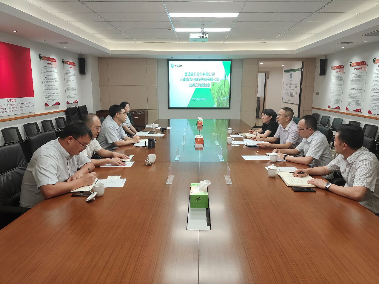 6月16日,云南農(nóng)擔公司與富滇銀行召開業(yè)務(wù)交流座談會。富滇銀行納然副行長、普惠金融部、昆明國防支行,農(nóng)擔公司郭影董事長、杜開波總經(jīng)理、風(fēng)險控制部、計劃財務(wù)部、戰(zhàn)略發(fā)展部參加了會議。