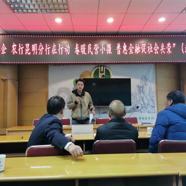 尋甸辦事處參加“百行進萬企,農(nóng)行昆明分行在行動,春暖民營小微,普惠金融促社會共榮”(政)銀企座談會。
